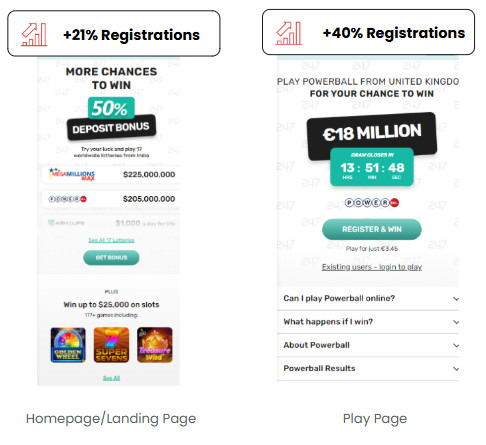 Lotto 24/7 and PlayHugeLottos are lottery sites focusing on the Canadian and Indian markets, who were struggling with low registration and deposit rates.
